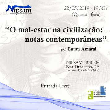 A psicóloga Laura Amaral (CRP 10/04142) participará do próximo encontro do Núcleo de Investigação em Psicanálise e Saúde Mental, que discutirá o tema "O mal-estar na civilização: notas contemporâneas".